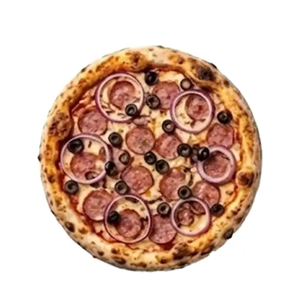Calabresa, queijo mussarela, cebola, azeitona