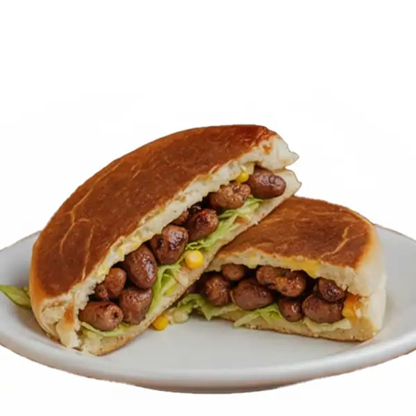 Linguiça Burussia, bife de carne, ovo, queijo, milho, ervilha, tomate, maionese