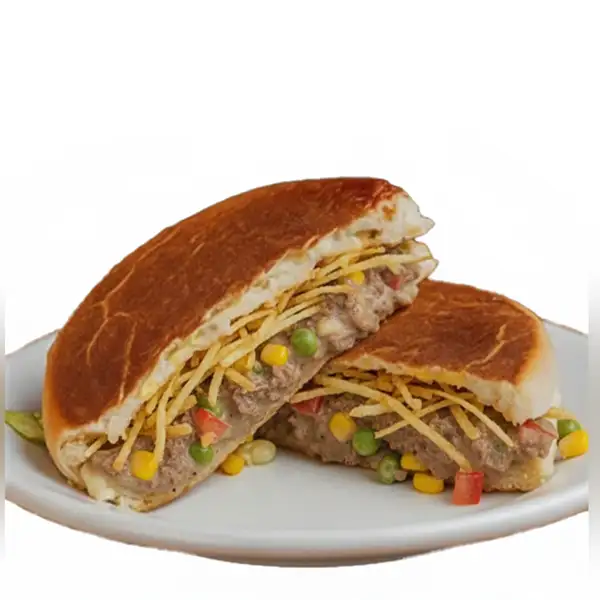 Carne, ovo, queijo, milho, tomate, ervilha, maionese