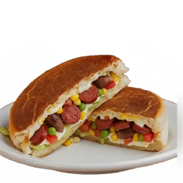 Calabresa, ovo, queijo, milho, ervilha, tomate, maionese