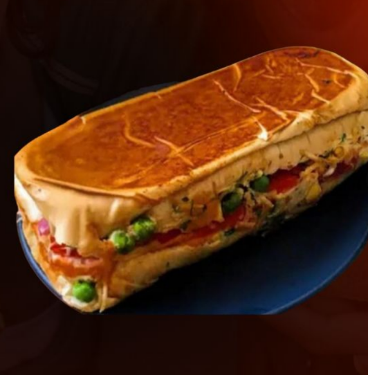 Bife de costela, ovo, queijo, milho, ervilha, tomate, maionese